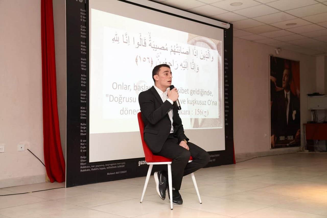 Saygı Duruşu ve İstiklal Marşımızın okunmasıyla başlayan program, şehitlerimiz için Kur'an-ı Kerim okunması, ve Eroğlu Nuri Anadolu İmam Hatip Lisesi öğrencileri tarafından hazırlanan gösterilerin icrasıyla devam etti.